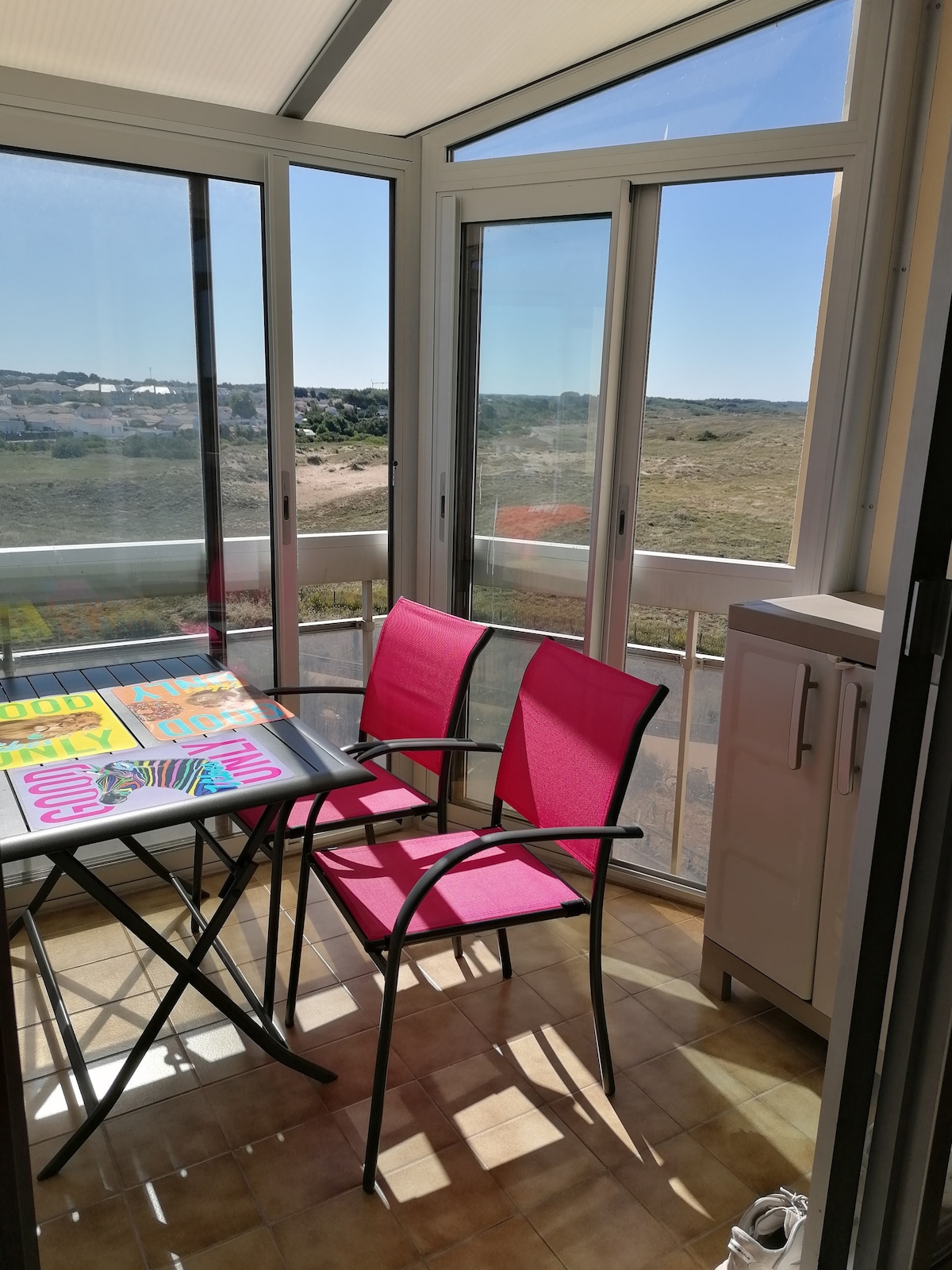 Face à la mer: profitez d'un panorama d'exception. Superbe appartement T2 (2/4 pers) rénové en 2024 - GRAND CONFORT. La plage et la dune sont au pied de l'appartement (sans route à traverser). Vue remarquable sur l'océan et l'île d'Yeu depuis l'espace repas, la loggia et même depuis le lit de votre chambre. Admirez les couchers de soleil en amoureux, en famille ou entre amis. Vous disposez de votre propre garage fermé; idéal pour votre voiture et pour ranger vélos, remorque et jeux de plage.