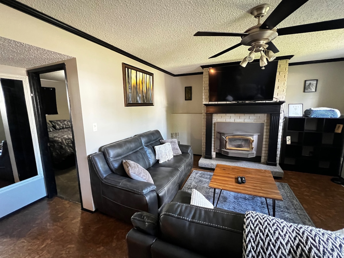 This stylish place to stay is perfect for group trips. Walking distance to grocery store and restaurants. This pet friendly home has everything you need. Fully equipped, bright and spacious! This place has four bedrooms which all have queen beds, two baths and two full living room spaces. This makes this house the perfect space for families. This house includes a large parking space for two large vehicles, large backyard and BBQ deck space. Can sleep a total of 9 people with pull out couch.
