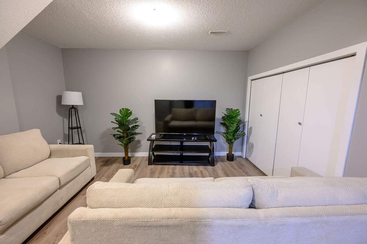 Welcome to your home away from home! This spacious main floor, 3-bedroom suite is the perfect retreat for families, groups, or anyone looking for comfort and convenience. Whether you're here for a vacation, newcomer or work-from-anywhere escape, our space has anything you need: 3 cozy bedrooms with comfy queen beds and fresh linens A fully equipped kitchen and a dining area A bathroom: bathtub/shower/fresh towels/toiletries Living room/fast Wi-Fi, smart TV and workspace Free laundry & parking
