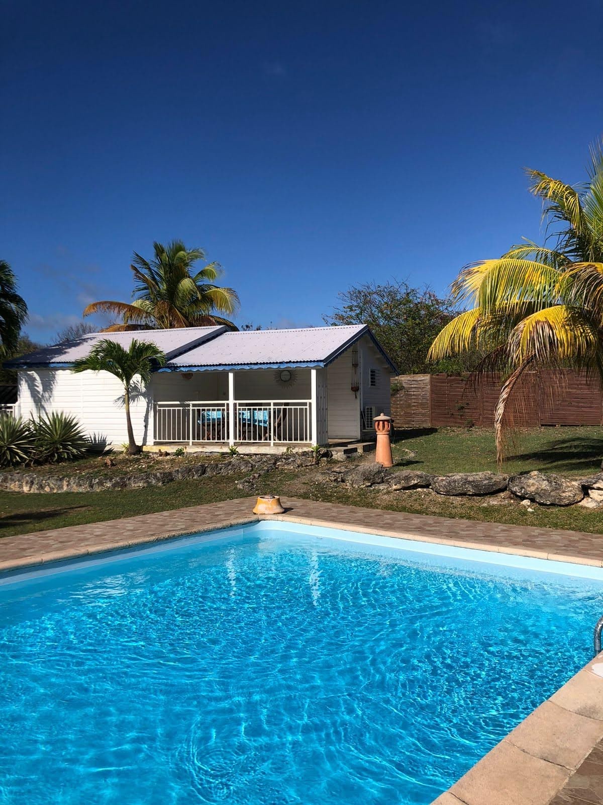 Bienvenue dans votre case créole nichée dans un jardin tropical avec piscine et espaces détente. Profitez du calme de la campagne tout en étant au centre de la Guadeloupe. Votre gîte, à 30 m de notre maison, vous assure tranquillité et disponibilité en cas de besoin. Remarque : - 2 chiens gentils sur place.