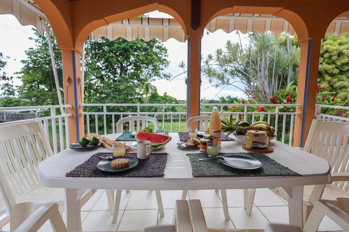 Envie de découvrir une Guadeloupe plus authentique ? Nichée dans les Grands Fonds, à proximité de Sainte-Anne, la Villa Alamanda est un havre de paix entouré de nature. Départs de randonnées à pied, jardin tropical, terrasse avec vue dégagée et couchers de soleil sur les Mamelles… ✔ 3 chambres (jusqu’à 6 pers.) ✔ Terrasse couverte ✔ Jardin fruitier (mangue, corossol, carambole…) ✔ WiFi, confort complet & cuve d’eau 👉 Idéal pour voyageurs en quête de calme, de nature et d’expériences locales.