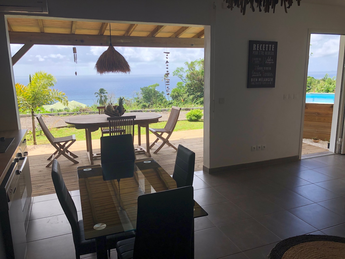Le Gîte a un accès direct sur la piscine et est situé face à l'Océan. L'emplacement est idéal pour visiter la Guadeloupe, Il comprend: • Une pièce principale donnant sur la piscine et la vue mer : Cuisine équipée + Wifi + Lave Linge • Une salle de bain double vasque+WC séparé. . Une chambre climatisée avec un lit 2 places et rangements . Un coin nuit climatisée avec un lit 2 places et rangements. . parking, Terrasse privée aux abords de la piscine . Aux abords du Gîte, un Jardin de plantes.