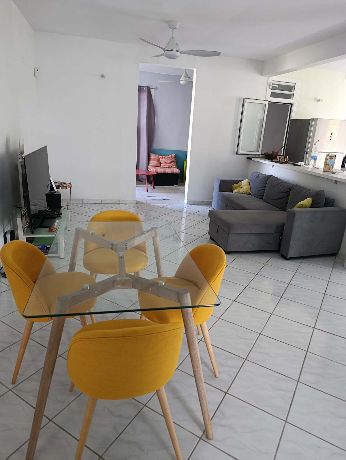 Bel appartement en haut de villa. Ce logement spacieux et lumineux de 110 m², entièrement équipé, comprend un salon, un séjour ouvert sur une cuisine fonctionnelle, une salle de bain ainsi que deux chambres climatisées pour un confort optimal. Situé dans un environnement calme et verdoyant, à seulement 6,5 km de la plage du Bourg de Sainte-Anne, il offre un accès rapide aux plus belles plages et à toutes les commodités. Un véhicule est fortement recommandé pour faciliter vos déplacements.
