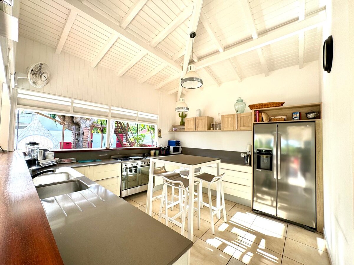 Belle villa individuelle ouverte sur l'extérieure équipée pour 8 personnes dans un jardin tropical clos avec grande piscine au sel. Maison à la décoration cosy et tropicale où chacun trouvera sa place en toute intimité. Profitez de ses 4 chambres climatisées donnant sur l'extérieur, ses 4 salles d'eau, sa cuisine ouverte et son coin plancha/bar extérieur. Quartier calme à 5 minutes en voiture de St François et de ses plages, du golf, aérodrome, kitesurf, club de plongée.