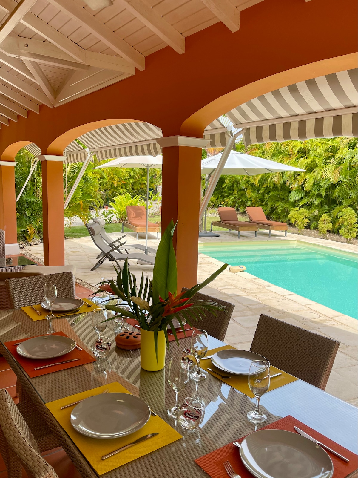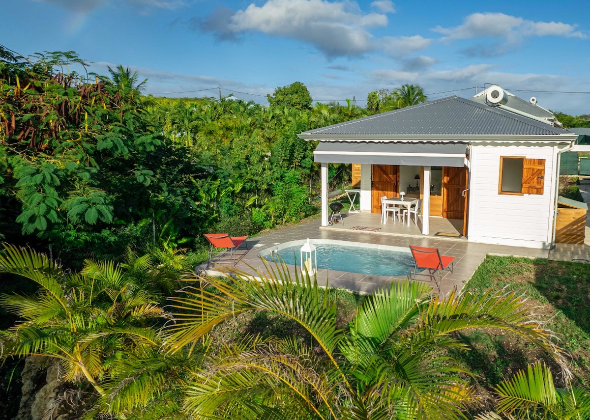 Belle villa individuelle ouverte sur l'extérieure équipée pour 8 personnes dans un jardin tropical clos avec grande piscine au sel. Maison à la décoration cosy et tropicale où chacun trouvera sa place en toute intimité. Profitez de ses 4 chambres climatisées donnant sur l'extérieur, ses 4 salles d'eau, sa cuisine ouverte et son coin plancha/bar extérieur. Quartier calme à 5 minutes en voiture de St François et de ses plages, du golf, aérodrome, kitesurf, club de plongée.