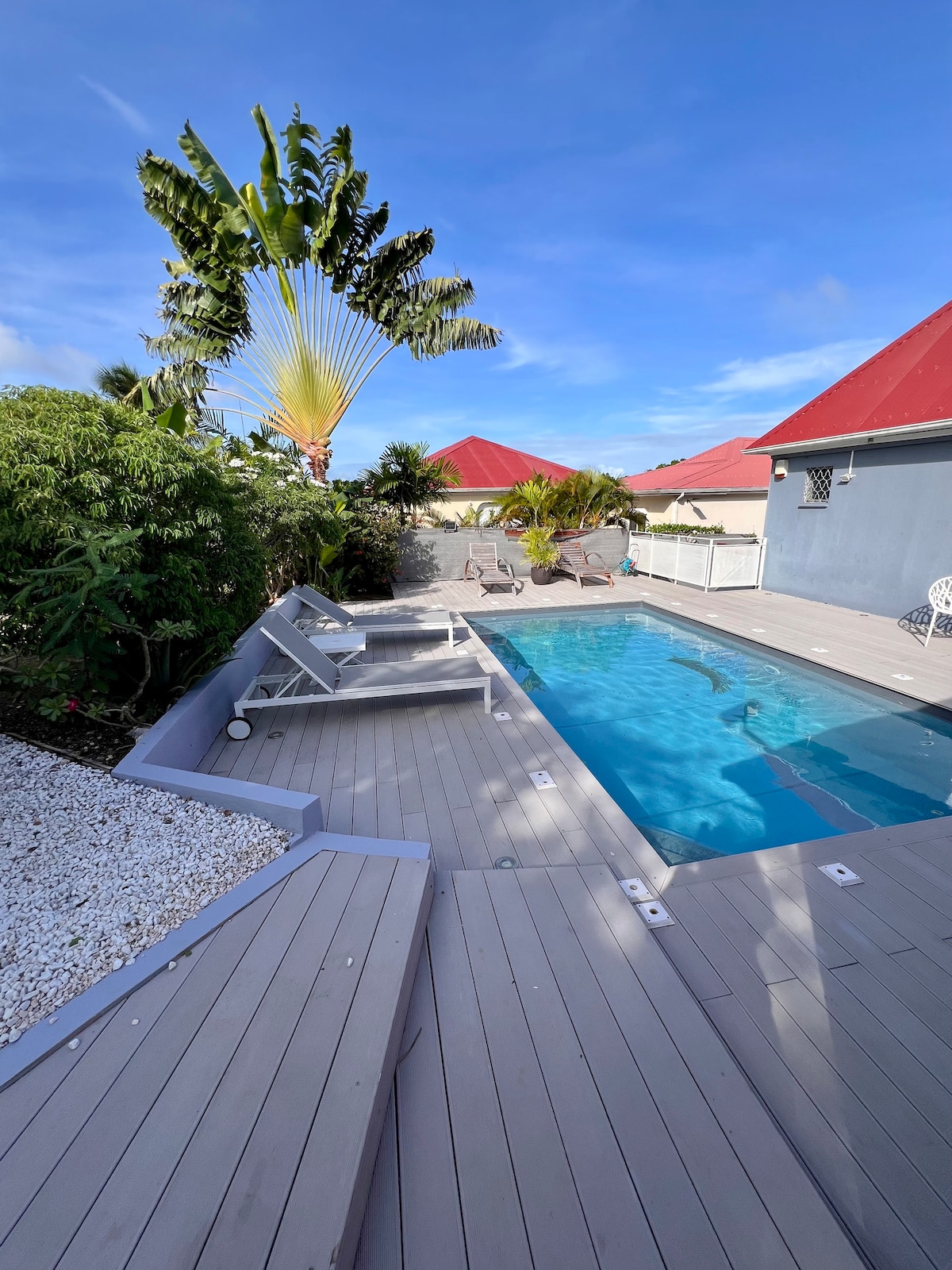 Maison idéale pour un séjour en famille ou entre amis à Saint-François, dans un environnement calme. Piscine privée sécurisée, 2 chambres climatisées avec ventilateurs, cuisine équipée, salon ouvert sur l’extérieur, buanderie, terrasse couverte avec BBQ. Espace enfants avec jeux. Cuve d’eau 2 200 L. Wifi fibre, parking gratuit. Proche plages, marina, commerces. Fêtes interdites. Un cadre confortable pour profiter du soleil, explorer la Guadeloupe et se détendre en toute simplicité.
