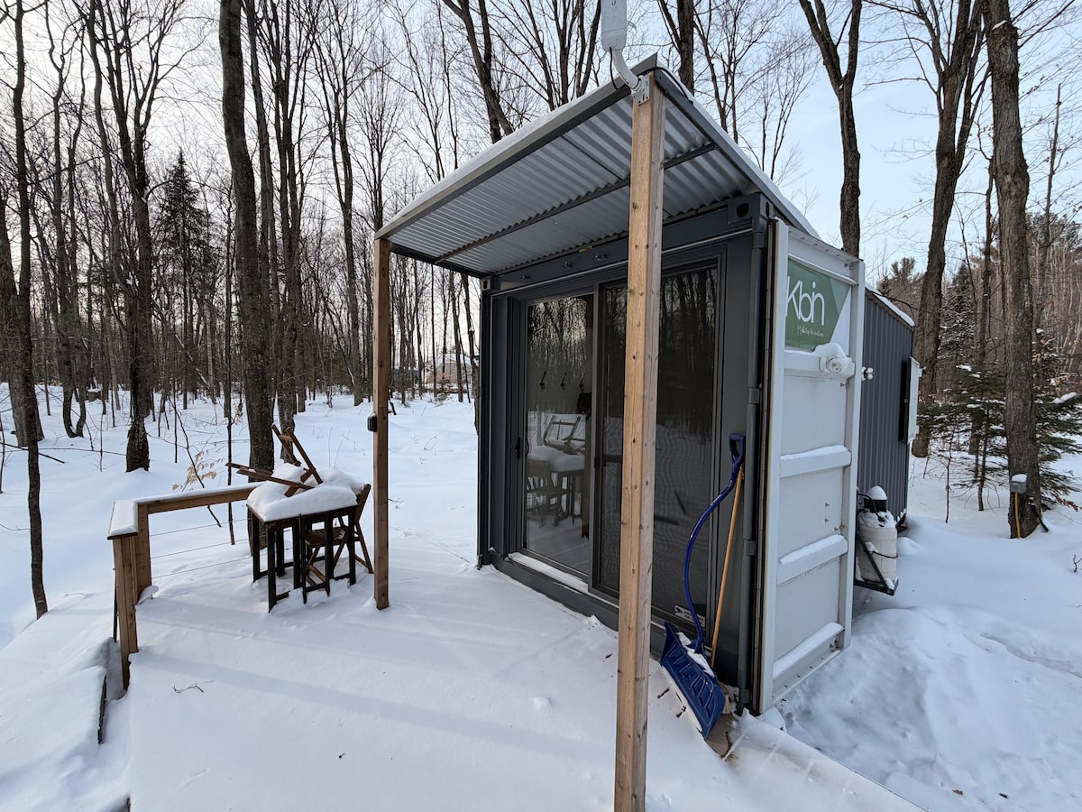Apprécier l’ambiance chaleureuse de ce petit nid douillet et coquet, en plein cœur d’une forêt de conifères. Venez profiter des paysages montagneux enneigés. Dans notre mini-maison, vous y ressentirez la tranquillité et l’intimité! Accès à des sentiers pédestres et à une rivière sur le domaine. 2paddles inclus 2vélos de montagne inclus 5 min des sentiers de ski-doo et 4 roues 5 min des commerces 5min des sentiers de la Nature d’Alexis 5min du pit de sable 15 min du lac Sacacomie