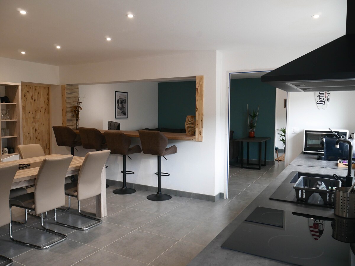 Au pied du massif du Donon, nous vous proposons un gîte entièrement rénové à neuf à partir d'une vieille grange. Il se compose de trois chambres avec salle de bain pour chacune : Deux équipées d'une douche et la troisième d'une baignoire. Une pièce de vie avec salon et télévision, cuisine intégrée et équipée, ainsi qu'une salle à manger. Maison sur deux niveaux, avecune terrasse, coin de verdure privatif clôturé, et deux places de parking. Le gîte est équipé d'un bain nordique en supplément.