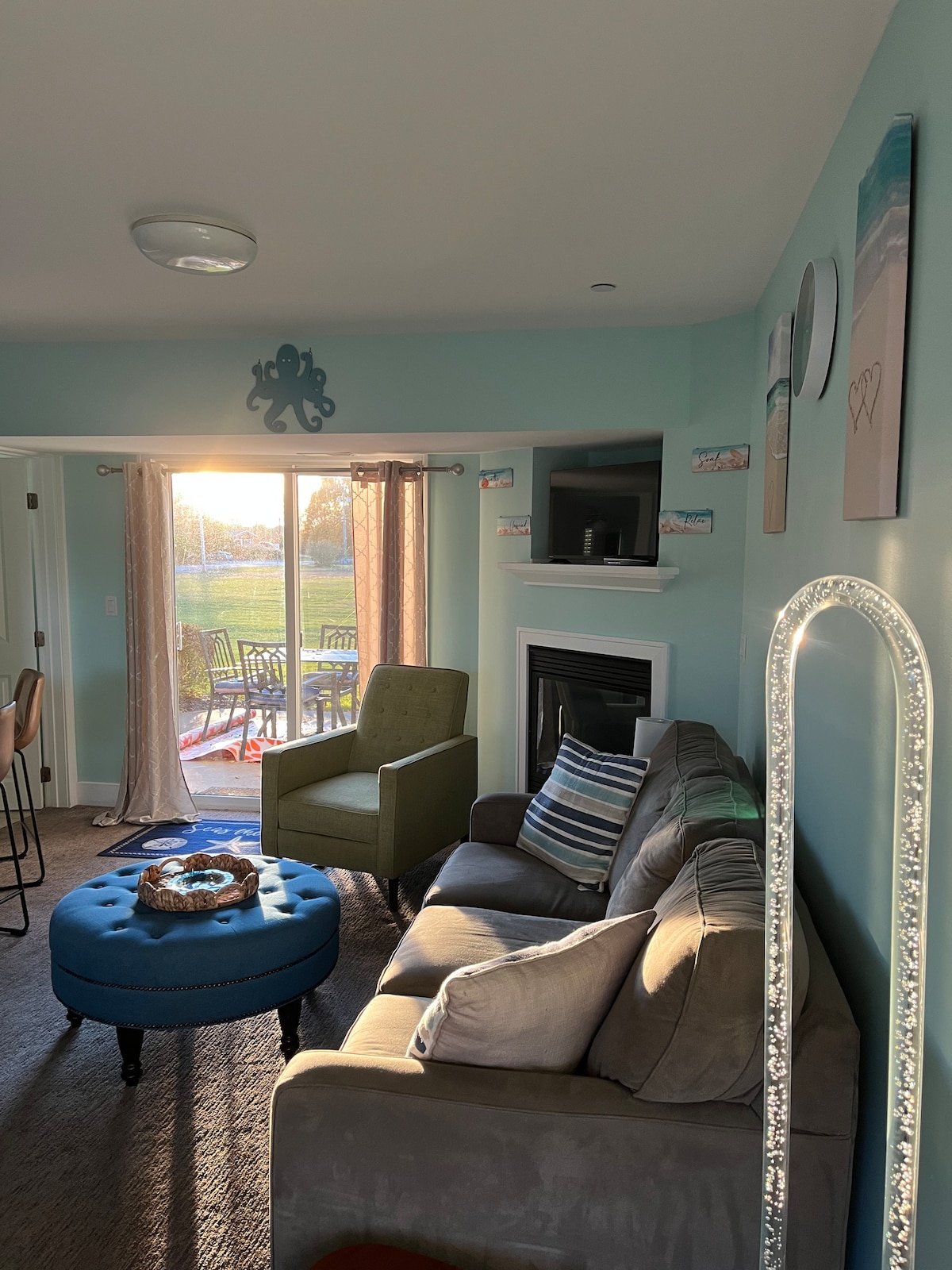 This spacious, walk-out condo is the perfect location for a beach getaway! Your private ground floor patio provides a relaxing view overlooking the Grand River…watch yachts as they sail toward Lake Michigan and enjoy breathtaking sunsets. The condo is within walking distance to bars, restaurants, and the enjoyable Tiki Bar at the adjacent Holiday Inn with lawn games and live music. Our condo’s unique amenities also offer access to an off sight marina pool reserved for members only.