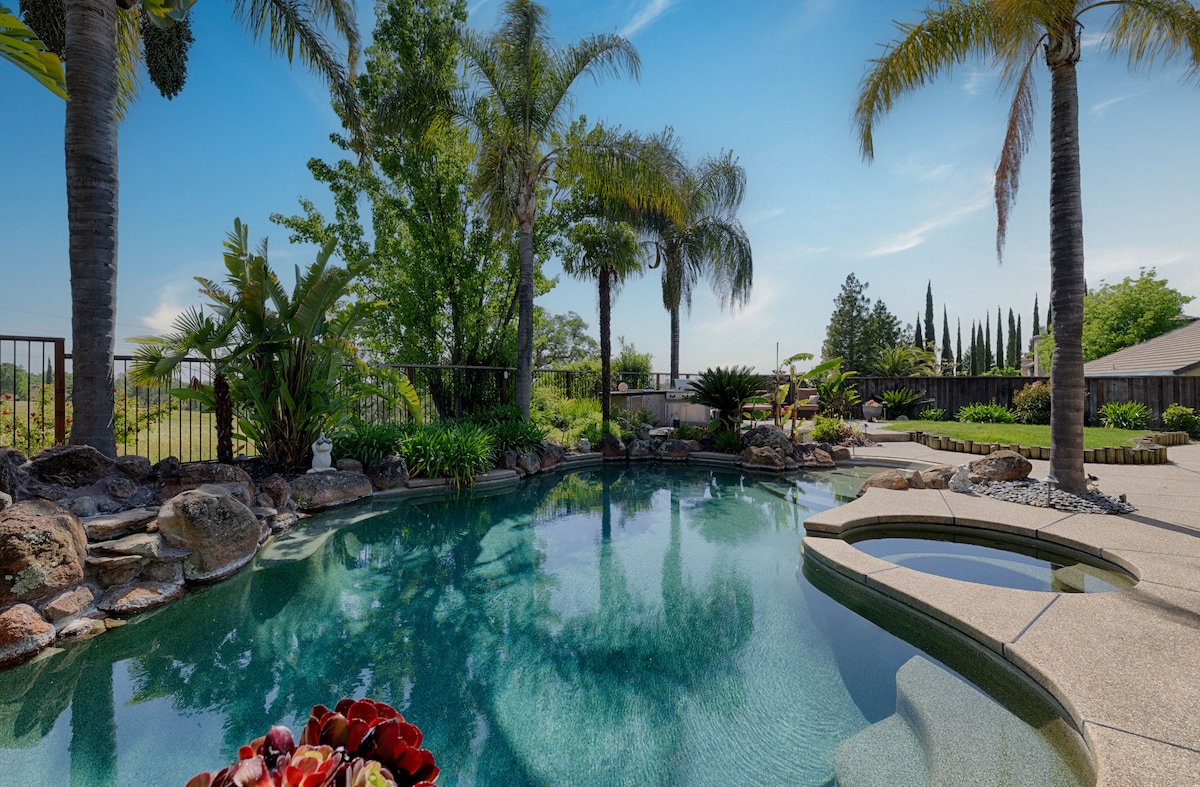 宽敞的4卧/2卫Roseville Oasis,带泳池和休息室