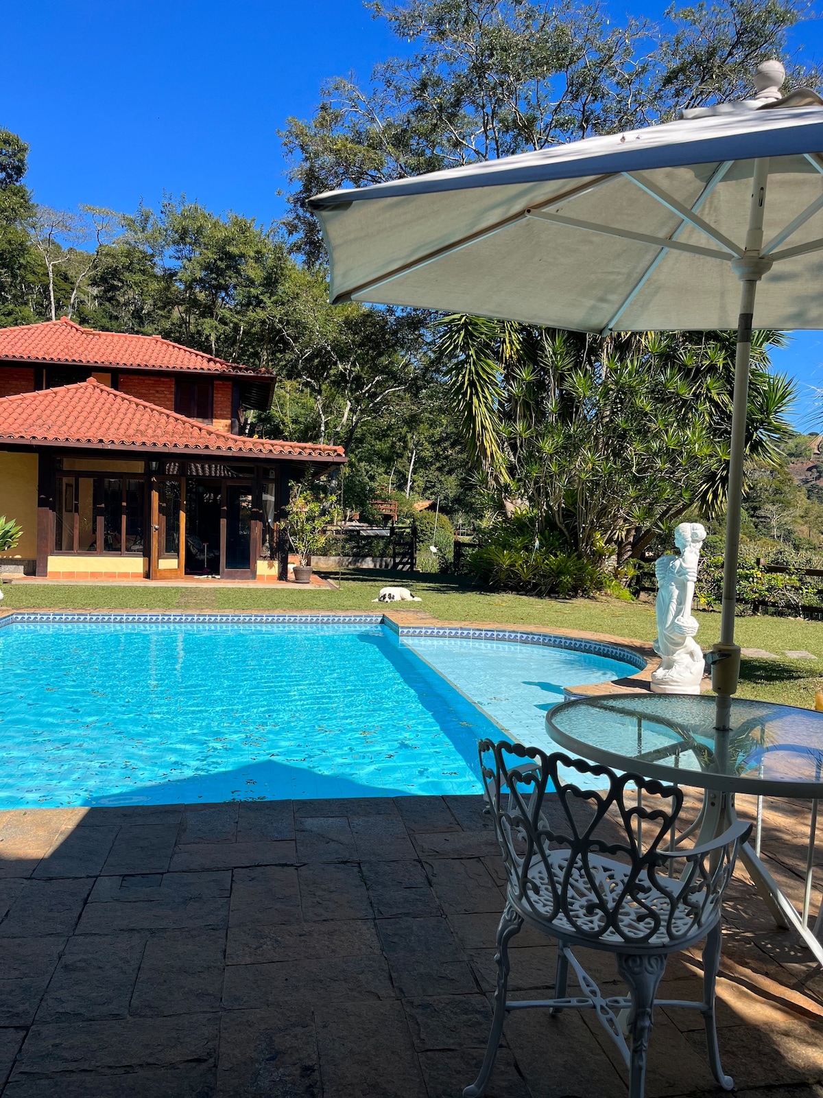 Localizada na Região da Serra Imperial, subida de Teresopolis, casa aconchegante, com piscina, churasqueira, jardim , varanda com rede, duas salas, cozinha americana e no espaço da churrasqueira tem outra cozinha completa, fogão, geladeira tambem. Lugar super agradável e de alto Astral para curtir finais de semana, férias, feriados com a familia. Muito próximo do Rio, 80 KM. Clima agradável para fondue no período de inverno