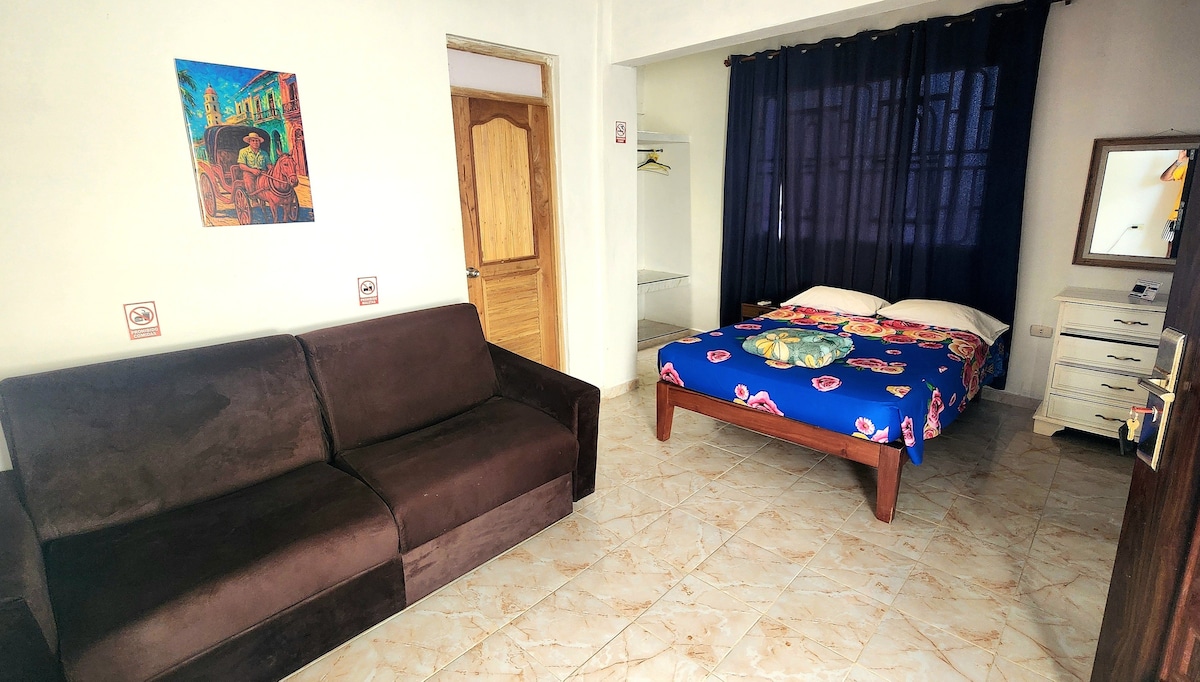 Luxurious fully independent apartment. The apartment has a furnished living room, TV, a large kitchen with all necessary implements for cooking, dining room, refrigerator, balcony and a room with air conditioning. This room has a double bed and a personal, fan, separate bathroom with hot and cold water 24 hours and three large windows that provide great natural lighting. A few meters from the historic center, from this accommodation you can easily reach various places of cultural interest.