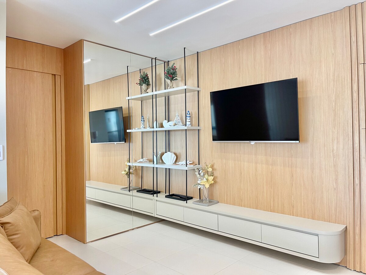 Experimente ficar hospedado num apartamento com vista privilegiada do mar, pé na areia de verdade e com piscina e jacuzzi aquecidas! O condomínio oferece 03 conjuntos de piscinas, 09 Spas, salão de jogos, quadra poliesportiva, brinquedoteca, 04 playgrounds, 03 espaços zen, pistas de caminhada, espaço pet, cancha de bocha, quadra de areia! Open Mall com cafeteria, pizzaria, petshop, decoração, mini-mercado, confeitaria, assados, lavanderia, sorveteria e muito mais!
