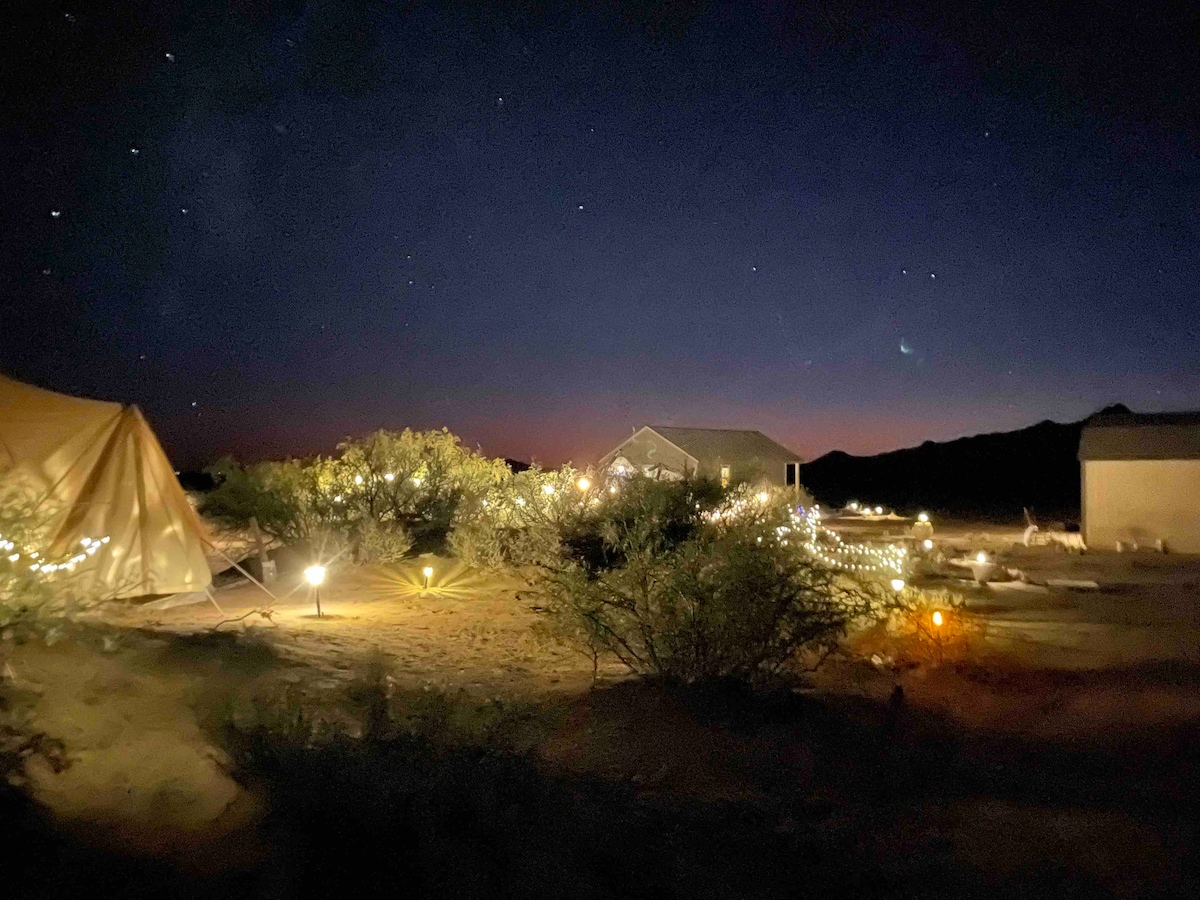 You read that right! Solar City Glamping offers complimentary Virgin Mimosas, Fresh Pizza, light breakfast Coffee, Granola Bars & drinking water! Dinner is absolutely FREE your first night as a huge thank you for joining our Glamping Family! This rare Solar Powered resort With plush comforters in each deluxe Villa. Being 100% Eco-Friendly the property is equipped Flushable, Biodegradable Lavatories, Solar shower bags and more! It’s time to Glamp! Your Stargaze, Sunbath & Yoga Awaits!