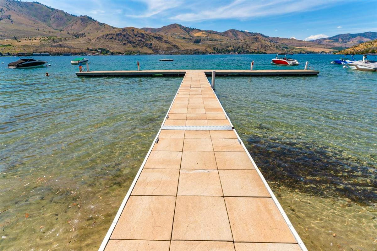 You can't beat this WATERFRONT location with great amenities, and private condo-living a short walk to downtown Chelan! Features include: - Large sandy beach, grassy areas, beautiful landscaping, picnic areas - Year-round heated adult hot tub. - Seasonal: heated pool, charcoal BBQ's, picnic tables, lawn furniture, cabana - Onsite coin-operated laundry, children's playground, large dock, pickle ball court, and free parking City of Chelan Short Term Rental License: #STR-0004