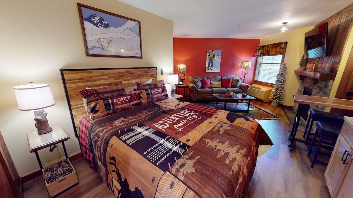 Newly renovated ground-floor condo just steps from Timberline Mountain! Features a king bed in the main bedroom and a twin-over-full bunk in the second. Enjoy a full kitchen, cozy fireplace, and bold mountain style. Perfect for skiing, hiking, or biking adventures—then relax in comfort after a day outdoors. The ideal Canaan Valley retreat, right from your front door!