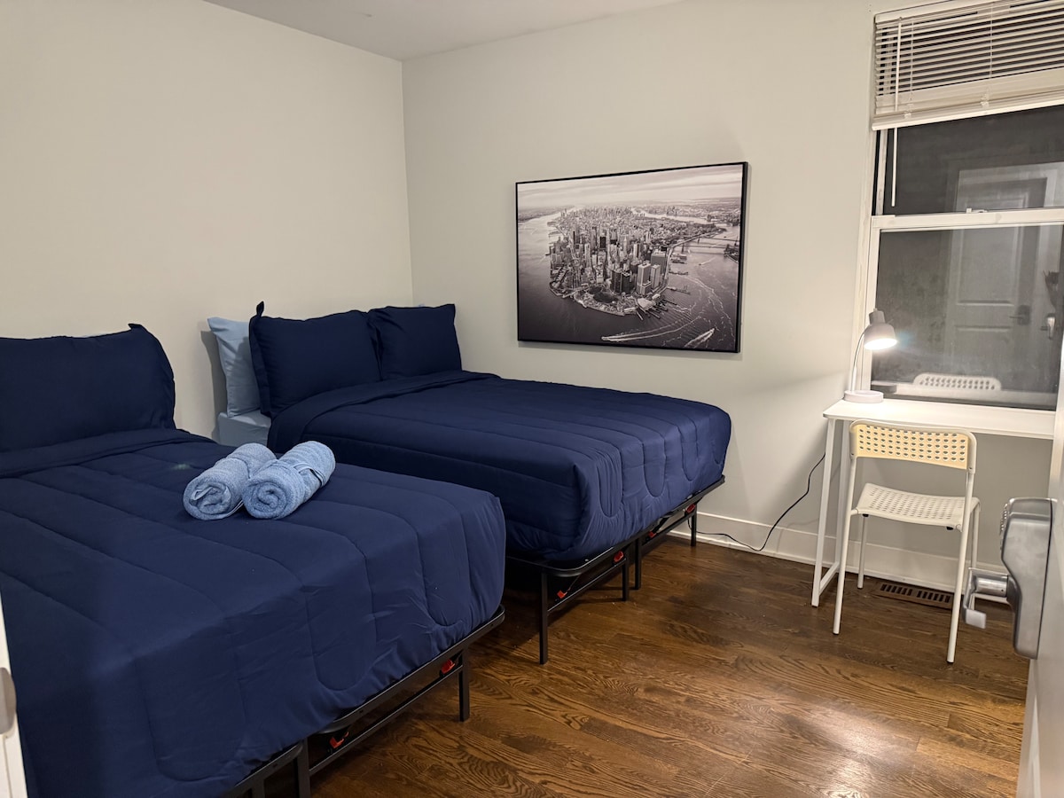 Experience the charm of Pilsen, one of Chicago's trendiest neighborhoods. Your private bedroom features a queen-size bed and an en-suite bathroom with a tub/shower. The room includes a small desk, ample storage space, and a TV with streaming services. Triple-paned windows provide plenty of natural light while minimizing noise from the nearby I-90/94 freeway. The room is located on the third floor (40 steps)! The second floor offers access to the kitchen, living room, TV den, and balcony.