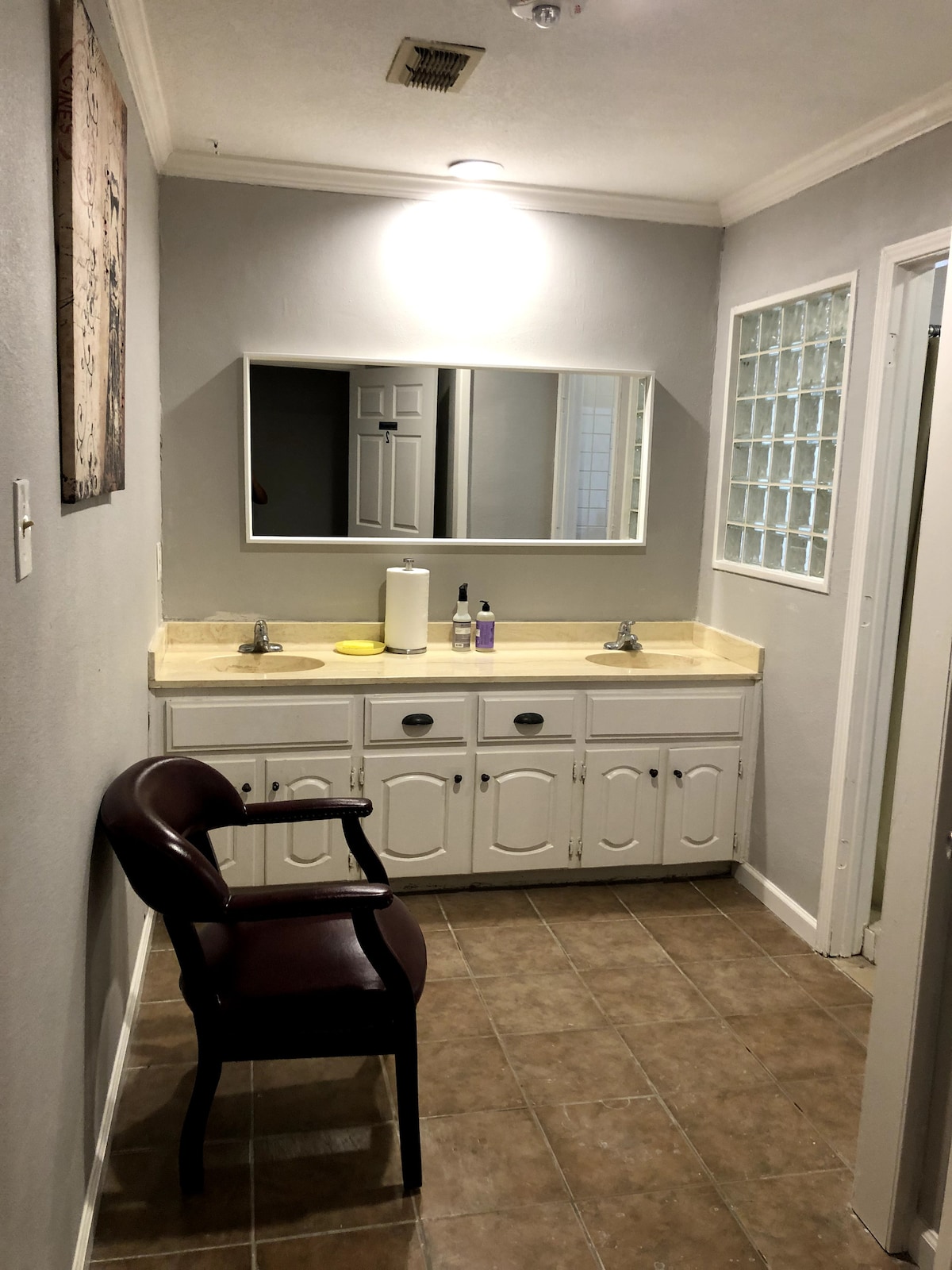 Discover the allure of our newly renovated home, presenting an exclusive bedroom with a luxurious king-size bed, an HD TV equipped with Roku, and rapid WiFi and ethernet connectivity. Experience the simplicity of a coded lock system, granting effortless entry. The shared kitchen awaits your tasty meals. 2 shared bathrooms are conveniently located close by. Get the job done with a desk & chair. Immerse yourself in the splendor of Irving, & enjoy our sprawling neighborhood park and walking trails