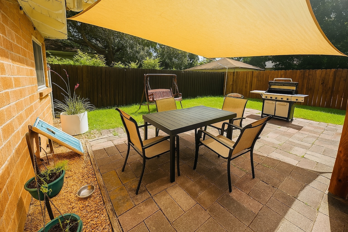 This beautifully updated 4-Bed house is centrally located near restaurants, shops, nightlife, and major highways which make it a breeze getting around. It's tucked away in a quiet neighborhood with friendly neighbors. The space is large and allows for all your friends and family to stay in one place! Our home is located near many area attractions, such has DFW airport, Lego Land, Music City Lewisville, Gaylord Hotel, Toyota Music Factory, AT&T Stadium, Globe Life Stadium, Six Flags, & more!