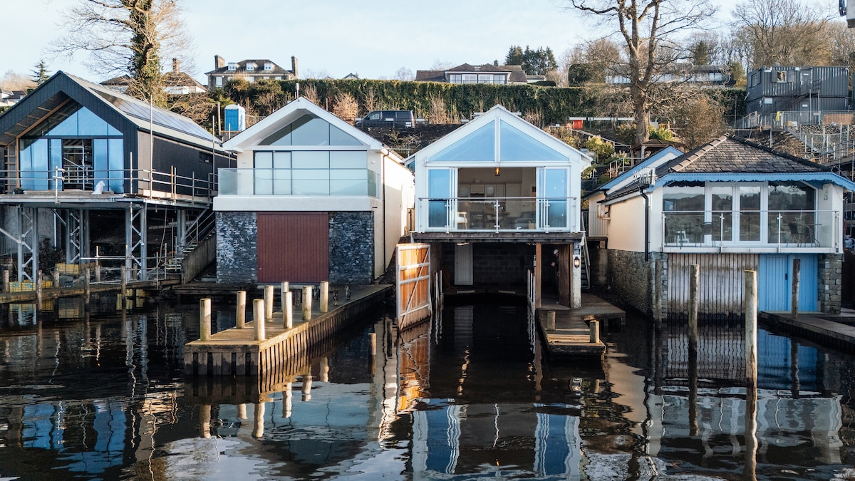 Luxury boathouse with breathtaking lake views
