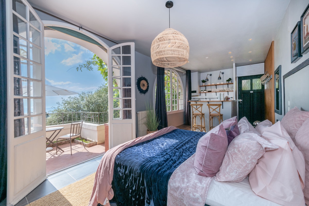 Grand appartement 80 m2 avec une chambre dans une aile indépendante de notre villla. grand jardin feerique . Aucun vis à vis. 2 piscines dont un jacuzzi , et bain suedois chauffe sur reservation. . Cadre magique. vue mer/ montagne Table extérieure terrasse couverte Terrasse piscine . Acces barbecue . cuisine : four, plaque induction lave vaisselle frigidaire Smeg. Sddouche avec toilette et seche serviette confort. poêle à bois jotul. Rideaux black out . grand ecran TV DVD . parking