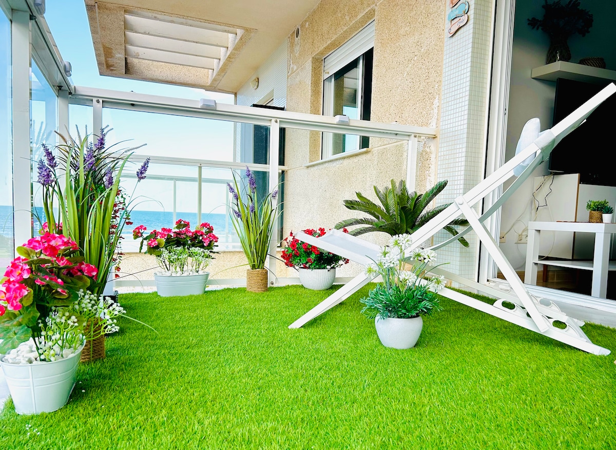 Cómodo apartamento en planta baja. Podrás disfrutar de comidas al aire libre en una amplia terraza. Puedes estacionar tu vehículo. El apartamento se encuentra a tan solo 50 metros de la primera línea de la playa. Supermercados, cafeterías, heladerías, juegos para niños en la playa,... todo lo puedes encontrar cerca del apartamento. Es un apartamento ideal para familias con niños ya que pueden estar jugando en el patio vallado. La puerta del parking es automática. Alquiler para familias