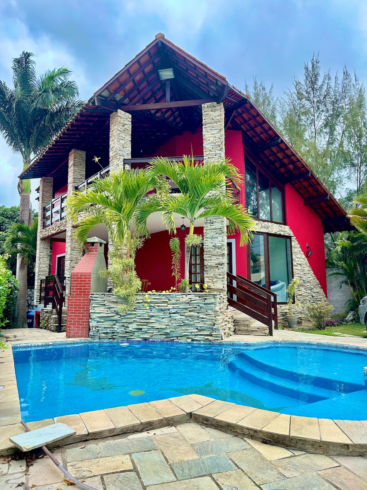 Mezanino com Salão de jogos privativo (sinuca e totó); WiFi; 05 quartos (2 suítes + 2 banheiros sociais); Chuveiro elétrico; Cozinha completa; Terraço Gourmet com churrasqueira; Piscina Aquecida (privativa) com hidro, cascata e iluminação; Split em todos qts; Cervejeira, Airfryer, cafeteira expresso, Utensílios completos A TAXA DE ENERGIA SERÁ COBRADA POR FORA, corresponde a R$ 1,00 o Khw. É necessário retirar uma foto do contador de energia no check-in e no checkout para fins de cálculo.