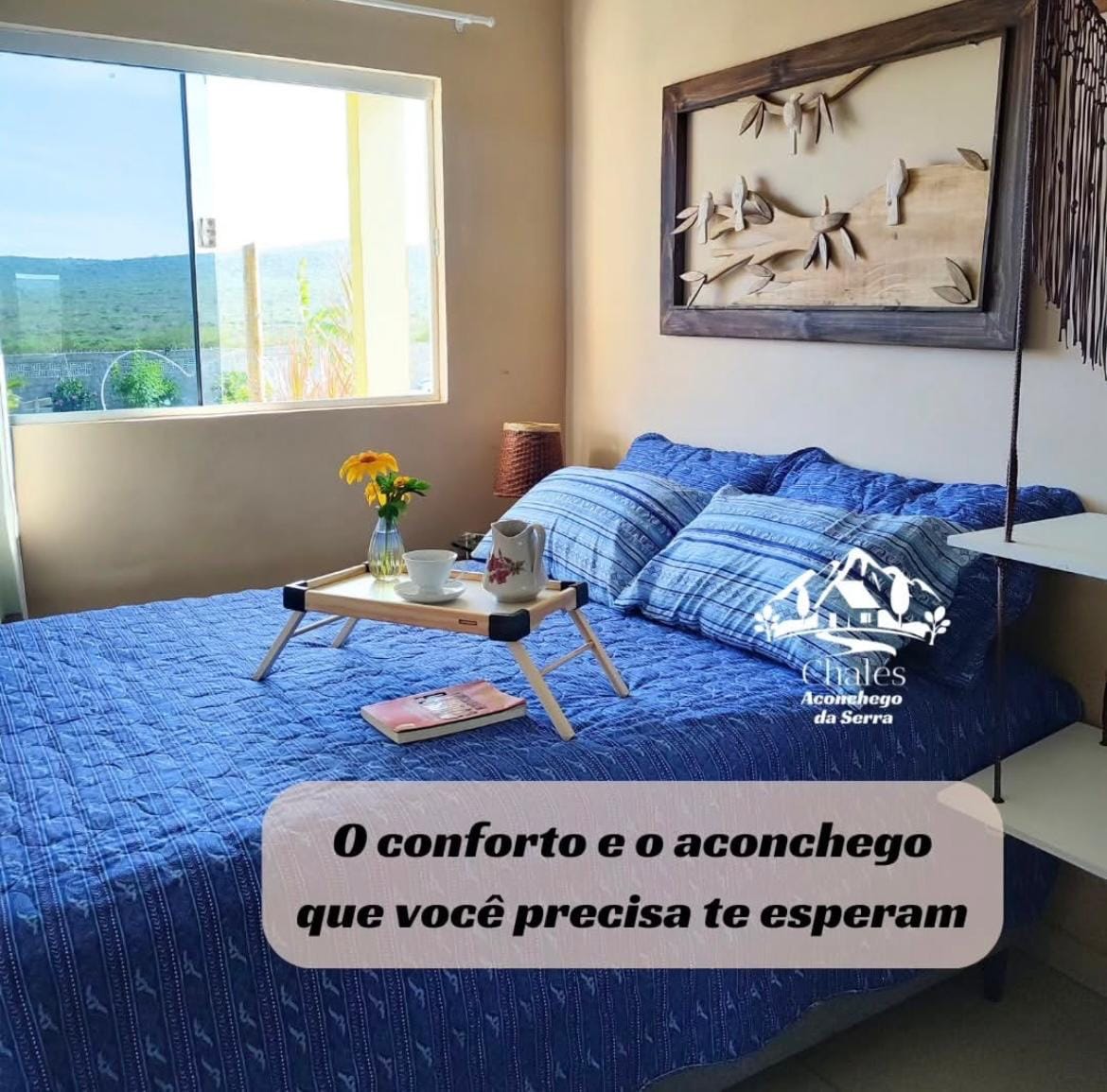 O nosso chalé é recomendado para apenas dois hóspedes para atender a todos os perfis. Você encontrará: Quarto com cama de casal, ar e TV; Cozinha estilo americana com utensílios básicos para refeições (talheres, pratos, panelas, abridor para vinho), cooktop, microondas e uma sala com um sofá em formato "L" com uma TV smart. Temos uma excelente área de apoio com piscina compartilhada. Proibido o uso da churrasqueira na área comum.