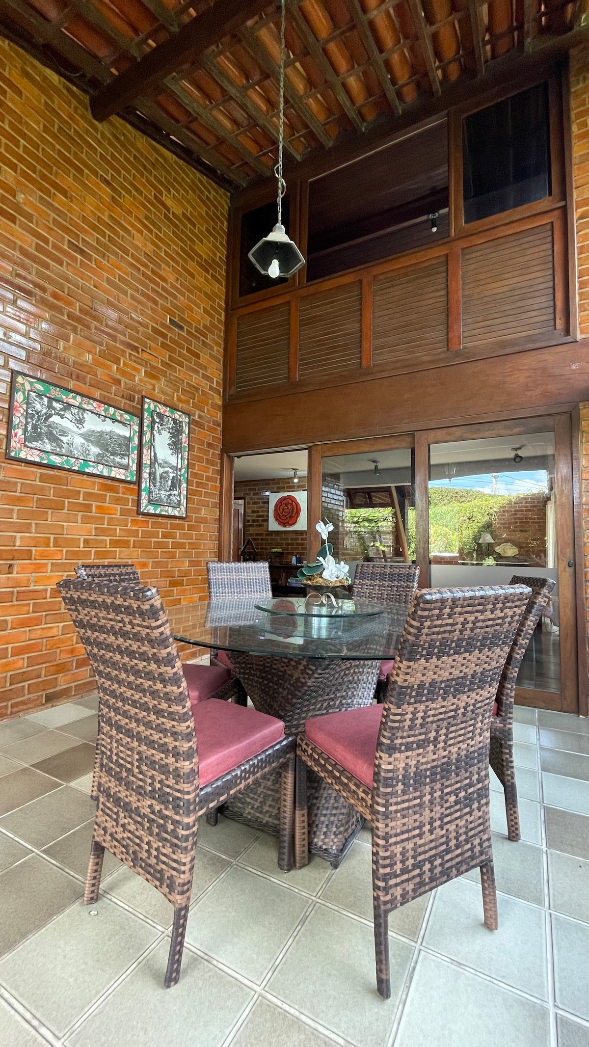 Casa de campo espaçosa (310m2) dividida em 3 andares com diversos ambientes para reunir a família e os amigos aproveitando o clima especial de Gravatá. A casa oferece área gourmet com churrasqueira, forno e fogão à lenha; sala de TV e jantar; varanda e terraço com vistas privilegiadas e 5 suítes (todas com com ar condicionado) para acomodá-lo com todo carinho e aconchego.