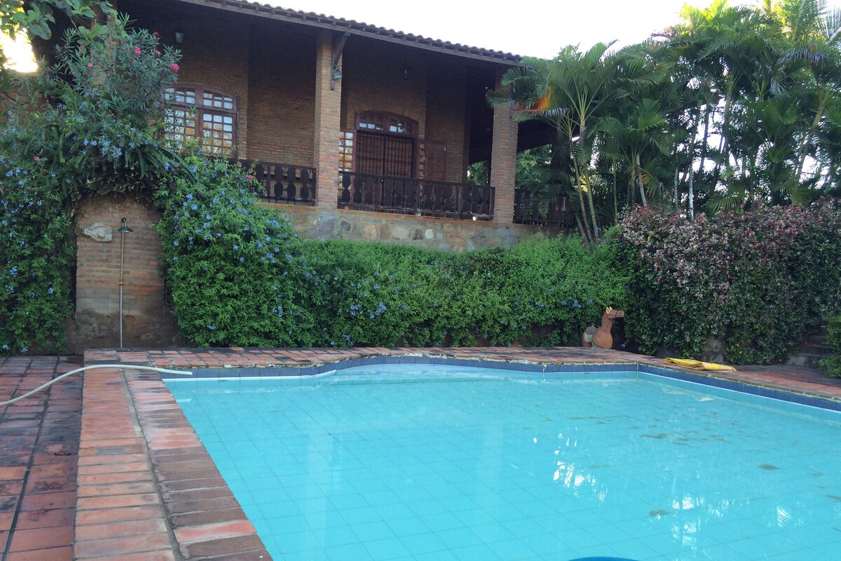 Venha buscar o ar puro da fazenda. Casa de Fazenda às margens da BR-232 em Gravatá/PE, casa com 1000 m2 de área, 07 quartos, sendo 5 com suítes, acomoda confortavelmente 27 pessoas, Piscina + apoio, Churrasqueira, fogão a lenha, quadra de vôley, campo de futebol de lareira, sala com 03 ambientes.