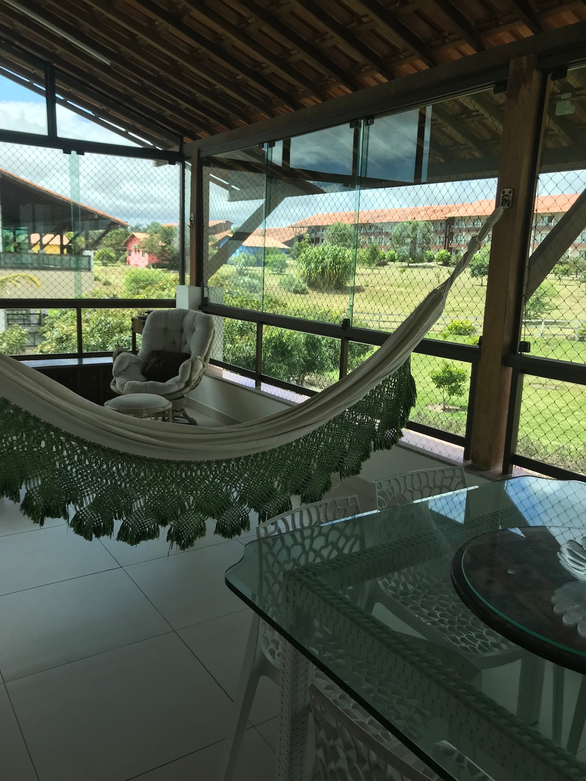 Flat muito aconchegante equipado de tudo, com móveis bem conservados para a família que gosta de curtir belas paisagens e descansar junto com a natureza desfrutando do que a de melhor em Gravata. O condomínio possui várias piscinas, entre elas uma aquecida, bar/restaurante com deliciosas refeições, quadra de tênis, campo de futebol, área recreativa para crianças, câmeras de segurança e portaria com controle de acesso.
