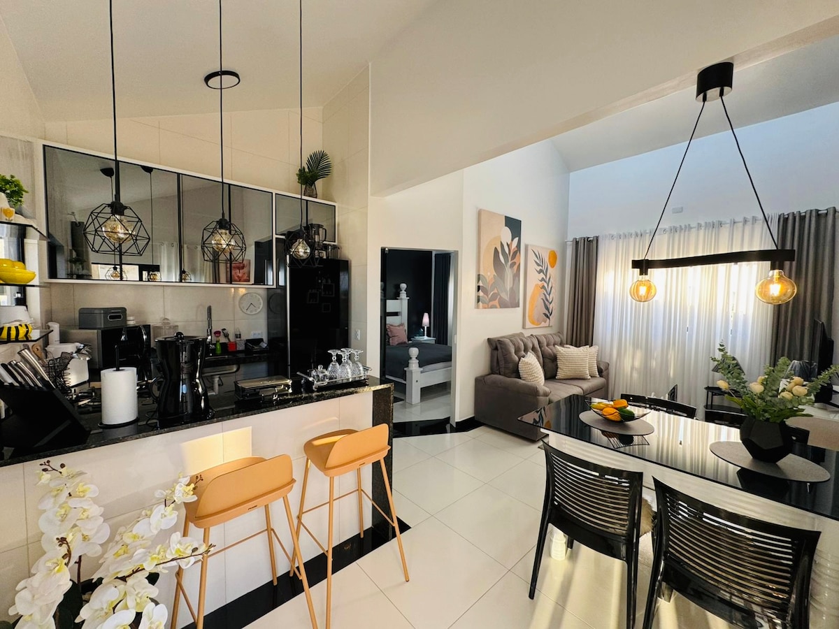 Take the whole family to this great place with lots of space to have fun. Luxury house with 4 spacious bedrooms that accommodates up to 12 people, complete leisure structure with pool table, games table, barbecue, office, whirlpool, sauna and futvolleyball court. It has a garage for up to 5 cars and is located in a high standard condominium. Located in the Ville Cristal condominium. The house has a complete private leisure structure exclusively for you and your family.