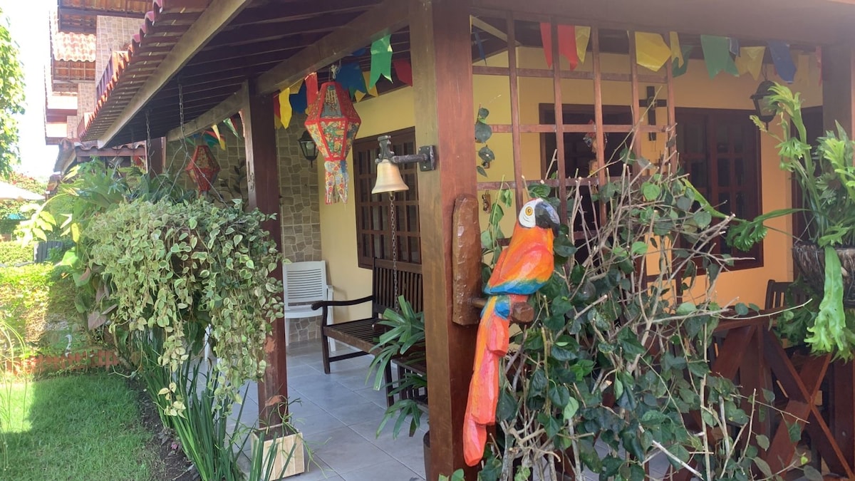 Relaxe com toda a família nesta acomodação tranquila. Casa em condomínio com segurança 24 horas, área de piscinas, quadra poli esportiva, salão de festas, parque para crianças, sala de jogos e academia de ginástica. A casa têm 3 quartos, sendo um com suíte, sala com tv, cozinha completa com fogão, forno elétrico, microondas, geladeira, bebedouro de água gelada, enxoval completo de cama e cozinha. Temos também uma churrasqueira e uma área de serviço com um banheiro e máquina de lavar roupas.