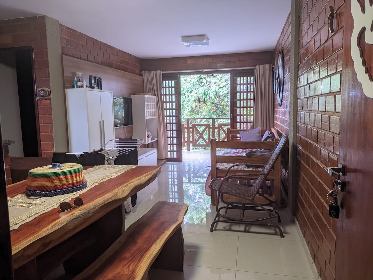 🌤️ Flat térreo, confortável e completo na serra — ideal para toda a família! No Condomínio Monte Castelo, anexo ao Hotel Fazenda Monte Castelo, em Gravatá. Descansar, curtir a natureza e ter a toda estrutura de lazer de um hotel fazenda à disposição. O conforto de um flat 100% plano, sem degraus, seguro para crianças e idosos. Dá pra ir a pé tranquilamente para a área de lazer. Clima gostoso da serra, espaço acolhedor, moderno e muito bem equipado. É só chegar e aproveitar!