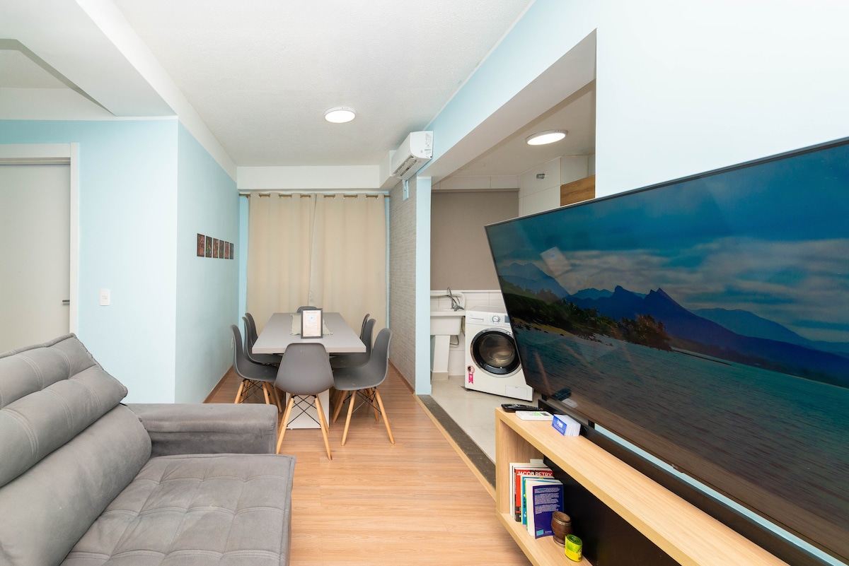 Brand new studio 43sqm in TREND CITY, amazing panoramic view (16th floor) to Guaíba Lake, Lake Shore and Marinha Park, condominium with complete infrastructure, concierge 24h, parking space, gym, 20m heated pool. Queen size beds, space to work with laptop, hot and cold air-conditioning 24,000, Smart TV 50, cable TV NET HD with 250 channels, Wi-Fi 250 mbps, barbecue pit, wash and dryer machine, iron, hair dryer, microwave, airfryer, tag and electronic lock.