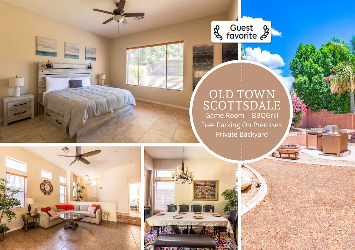 Unwind in this newly remodeled home in sunny Scottsdale. Enjoy lazy days by the pool, relax in the hot tub, and indulge in great food. With games, a modern kitchen, and easy access to attractions, there’s something for the whole family. Kierland Mall – 5 Min Drive TPC Scottsdale – 10 Min Drive Taliesin West – 15 Min Drive Looking for something a little different? I’ve got 8 more top-rated Scottsdale homes, all 5 minutes or less from Old Town. Click my host profile to explore!