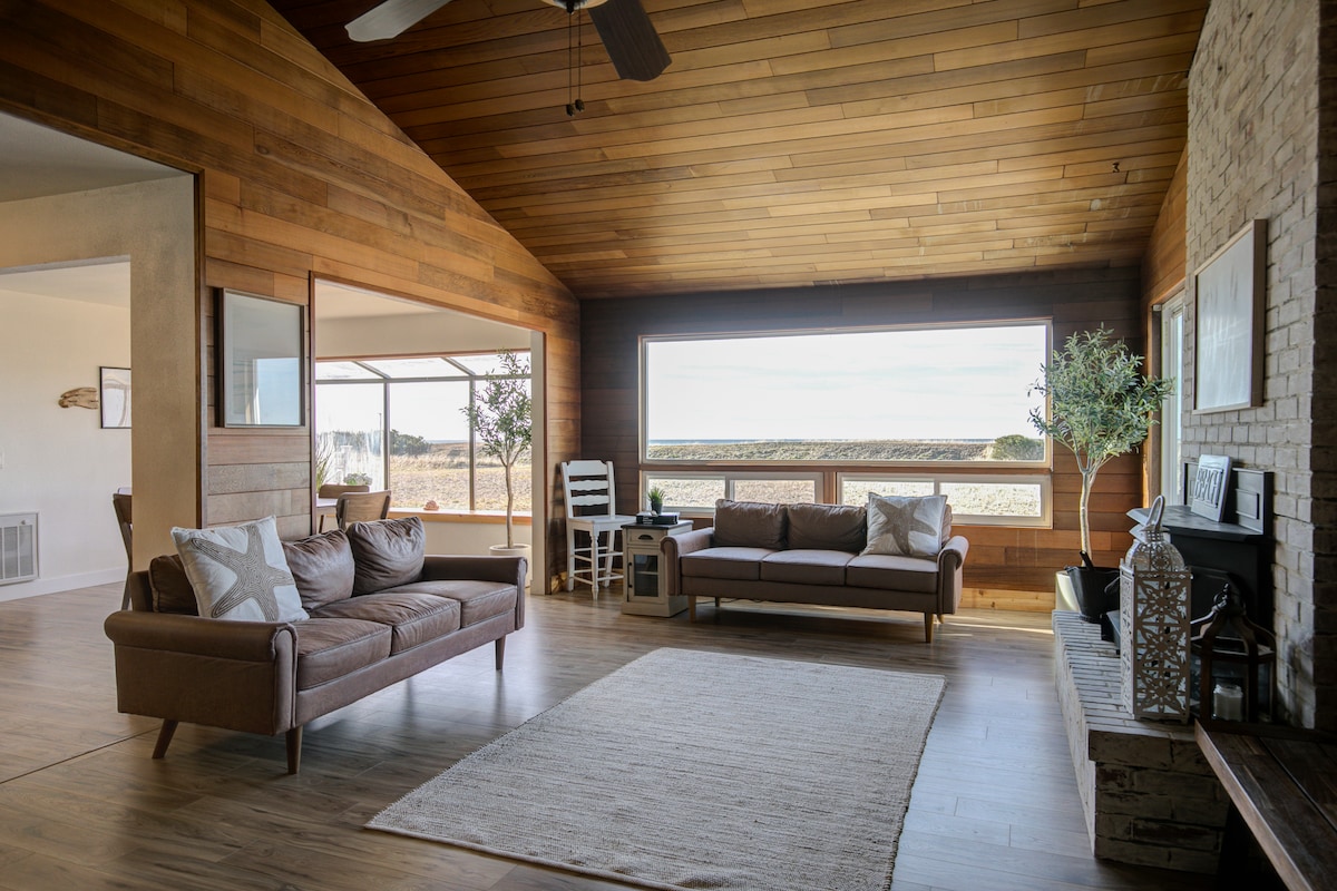 Unwind at Riptide Retreat with ocean views and gorgeous sunsets! Situated on 2 private acres between Ocean Shores and Seabrook. Seasonal beach path for walking only (Summer/Fall). Bikes/motorized vehicles strictly prohibited on path & dunes. 2 min drive to public beach entrance. Enjoy a fully stocked kitchen, fenced yard for dogs, propane grill, large deck, reclining sofas, electric fireplace, smart TVs, Keurig, 2 Pack ’n Plays, laundry room, beach toys, and more. Garage fits two small cars.