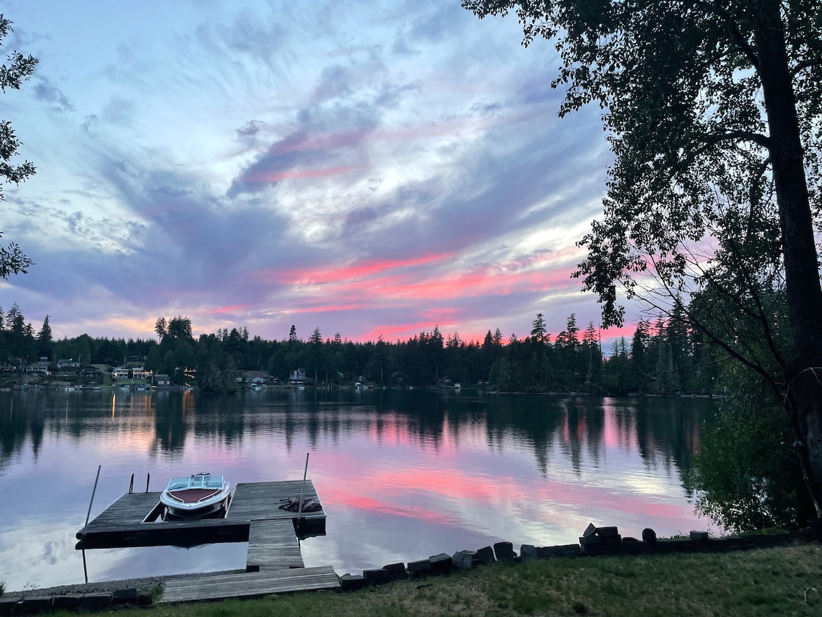 Escape to our custom-built lakefront cabin and watch the storms roll in & out while you snuggle up on the sofa by the wood-burning stove • Option to book private masseuse • Well-stocked kitchen • Comfortable beds and cozy blankets • 2.5 baths, 2 bedrooms upstairs + spacious lower level w/adult sized bunks, 70"TV, games, yoga, kids nook • Wraparound deck, BBQ, firepit & S'mores • EV charger • Located in closest neighborhood to Olympic Park & hiking