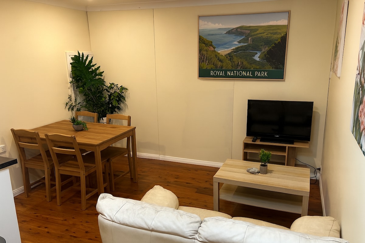 Kick back and relax in nature with this calm, quiet, clean and stylish studio apartment just minutes away from the Port Hacking River, Royal National Park and Cronulla beaches. The perfect location for a romantic weekend away, family visit or for adventure seekers looking to kayak, boat or fish the Hacking river and explore the abundance of wildlife and attractions the Royal National Park has on offer. Within walking distance to Jack Grays cafe, convenience store and bottle shop.