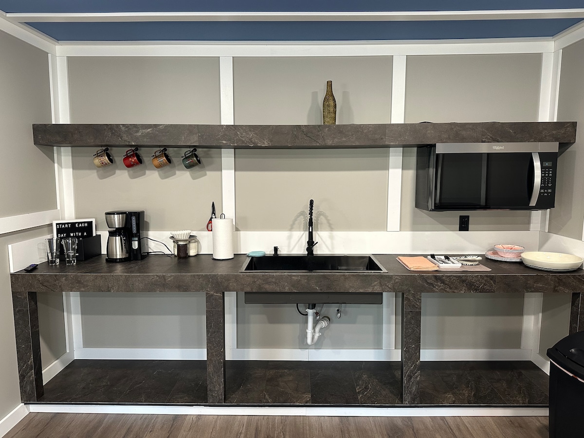 Welcome to your private in-town escape. This spacious 500 sq ft open-concept stay blends modern style with Cozy comfort. Unwind in a plush king-size dream bed, refresh in the Spa-like Rainfall Escape shower with endless hot water, and sleep soundly with room-darkening blinds. Centrally located but designed to feel private and peaceful. With generous parking—boats and trailers are always welcome. Whether you’re here to relax or explore, this space was made for comfort.