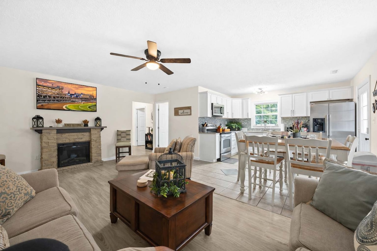 Escape to easy lake living at this Rough River Lake retreat in Falls of Rough, KY. Nestled on 1.5 acres w/ seasonal lake views, this pet-friendly vacation rental offers a wrap-around deck, fire pit, king beds, and high-speed Wi-Fi. Walk to the lake for fishing, swimming, or kayaking, with a boat launch nearby. Perfect for family getaways, romantic escapes, or remote work. Explore Rough River Dam State Park, hiking trails, and local festivals. Book your Kentucky lakefront getaway today!
