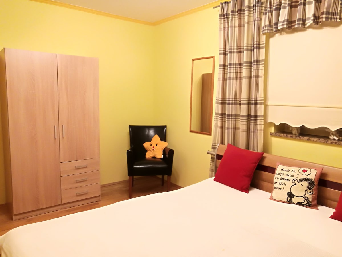 PLEASE READ THE DESCRIPTION carefully so that we can welcome you perfectly in our house. You will find a peaceful retreat, great hiking routes, a lot of silence and even convenient homeoffice. The basic price is for up to 4 people, including THE STUDIO (living room, kitchen, bathroom) and 1 BEDROOM . If you want a FURTHER BEDROOM (1 double bed) please BOOK 5 PEOPLE.