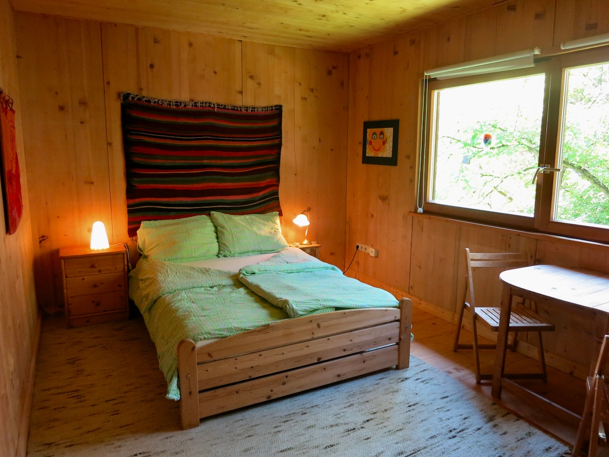 PLEASE READ THE DESCRIPTION carefully so that we can welcome you perfectly in our house. You will find a peaceful retreat, great hiking routes, a lot of silence and even convenient homeoffice. The basic price is for up to 4 people, including THE STUDIO (living room, kitchen, bathroom) and 1 BEDROOM . If you want a FURTHER BEDROOM (1 double bed) please BOOK 5 PEOPLE.