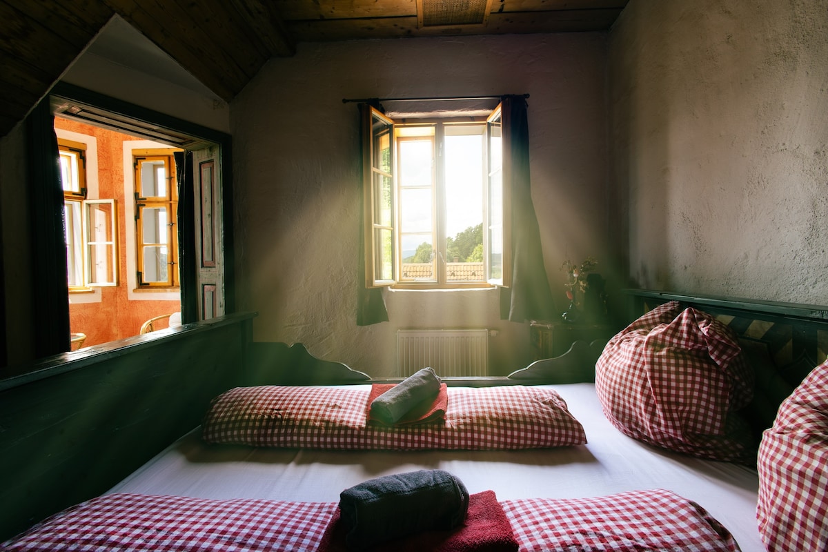 You’re here for the Soft Opening – renovation in progress. 🛏️ 2 retro-style single beds 🚿 Shared bathroom, old-school but clean (mxied) 🎨 Local art by young Graz talents in the hallways 🔑 Fully automated, no staff – self check-in via key safe Not perfect. But definitely different. Welcome to numbr25.