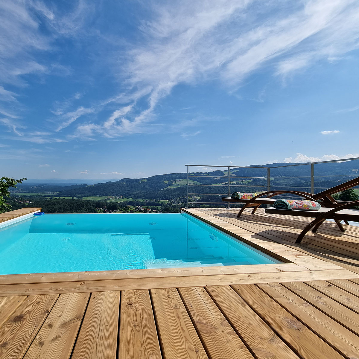 Am Franzlhof erwarten Sie 4 liebevoll in Handarbeit errichtete Chalets aus Holz und mit moderner Ausstattung. Im exklusiven Premium Privat Chalet genießen Sie Ruhe, Komfort und Privatsphäre – mit eigenem überdachten (beheizten) Pool, privater Terrasse, Grillecke und herrlichem Blick ins Grüne. Der Franzlhof liegt nur 5 Minuten von Stainz entfernt – ideal für Naturliebhaber, Biker und alle, die das Echte schätzen. Mit Spielraum, Sauna, E-Car-Ladestation, geführten Biker-Touren und E-Bike-Verleih.