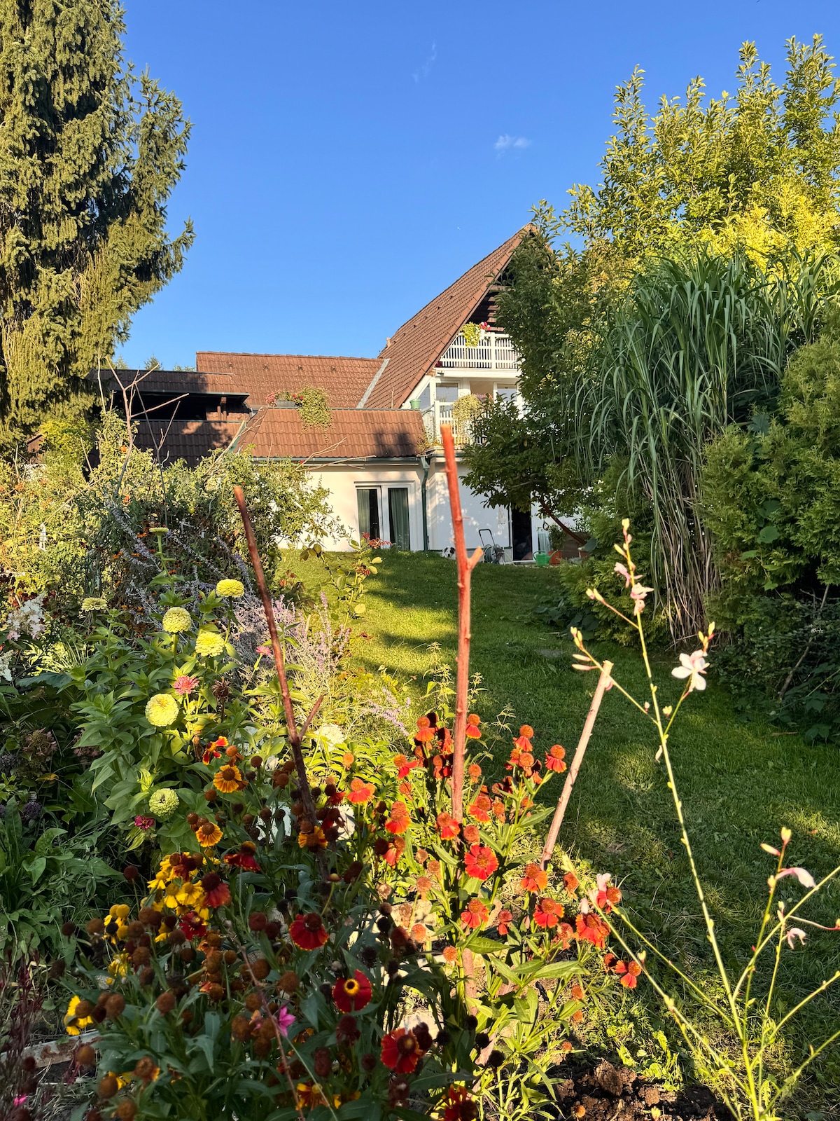 PLEASE READ THE DESCRIPTION carefully so that we can welcome you perfectly in our house. You will find a peaceful retreat, great hiking routes, a lot of silence and even convenient homeoffice. The basic price is for up to 4 people, including THE STUDIO (living room, kitchen, bathroom) and 1 BEDROOM . If you want a FURTHER BEDROOM (1 double bed) please BOOK 5 PEOPLE.