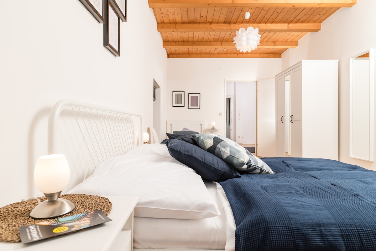 The 70m2 apartment offers accommodation for up to 3 people in one cozy bedroom with one double bed as well as a convertible sofa a in the living room. The bathroom equipped with a shower offers you relaxation after a busy day. The fully equipped kitchen gives you possibility to prepare your own home-cooked meals, to be enjoyed at the large dining table or on the courtyard, which you have access through the living room! The apartment is equipped with necessary amenities to cool your own meals.