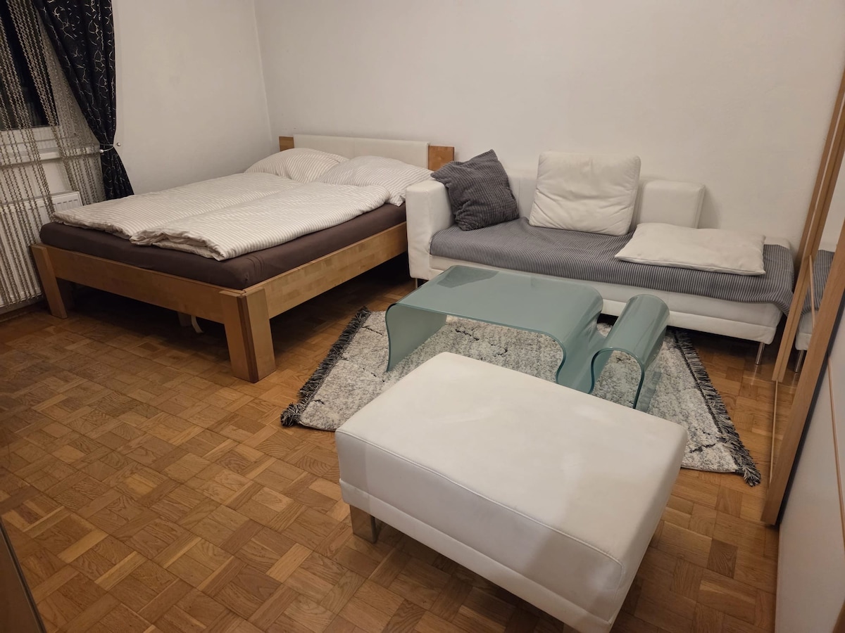 A Garcionerre in the basement of a single-family house in the countryside, surrounded by meadows and forests is available as a quiet accommodation for artistic activities or vacation. The accommodation is ideal for creative work, as the tranquility of nature inspires. The surrounding area offers hiking opportunities and an atmosphere for relaxation. Supermarkets and restaurants can also be reached quickly by car. A bus stop to the city center or Graz is within walking distance.