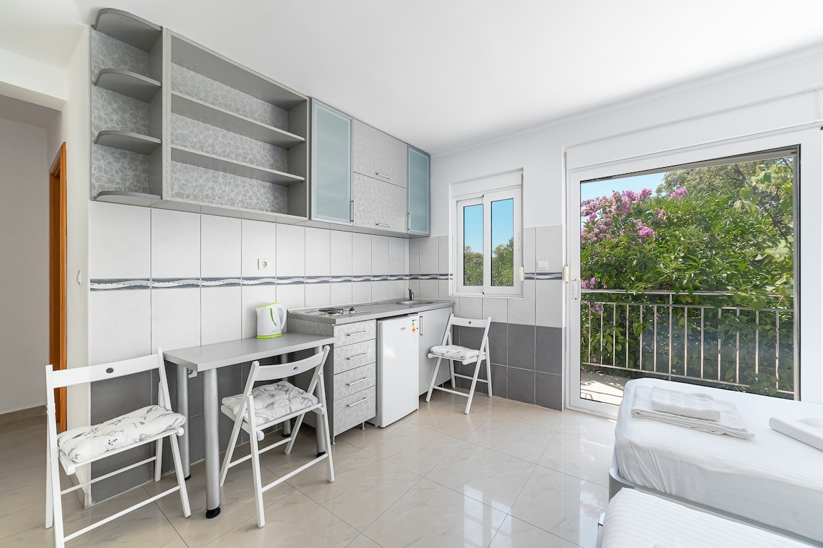 Welcome to a cozy and comfortable studio apartment located in a nice and urban area in Budva! This charming and spotless studio features a comfortable double pull-out sofa bed, a fully equipped kitchen and a lovely terrace. With just 150 meters from the central bus station and a pleasant 15-minute walk to the beach, it’s the perfect spot for a relaxed and enjoyable stay.