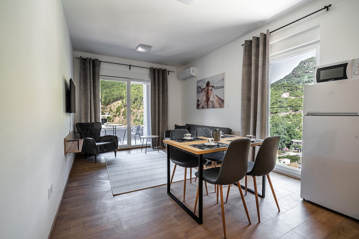 Fully furnished with modern interiors brand new apartment in the hearth of Budva! Within walking distance of day & nightlife options. Exclusive restaurants, cafes, supermarkets, night clubs, 4-minutes walking distance from waterfront promenade/beach. In the middle of all actions but just far enough where it won't affect your SLEEP. Enjoy beautiful views of the sea and the city of Budva from the private balcony. THIS IS THE PLACE TO STAY.